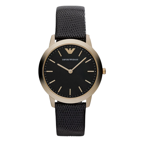 EMPORIO ARMANI Classic Black Leather Strap Black Dial Quartz Watch for Ladies - AR1747