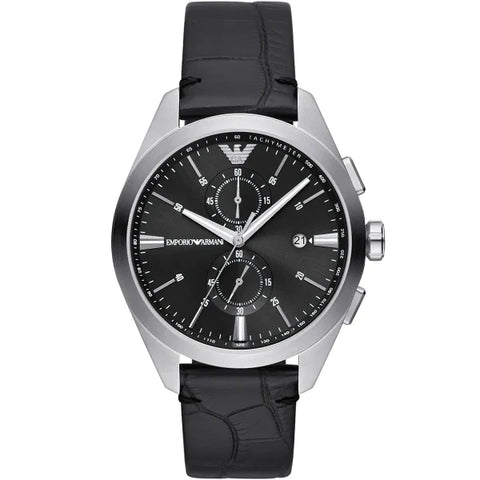 Emporio Armani Claudio Black Leather Strap Black Dial Chronograph Quartz Watch for Gents - AR11542