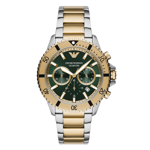 Emporio Armani Diver Two-tone Stainless Steel Green Dial Chronograph Quartz Watch for Gents - Emporio Armani A11586