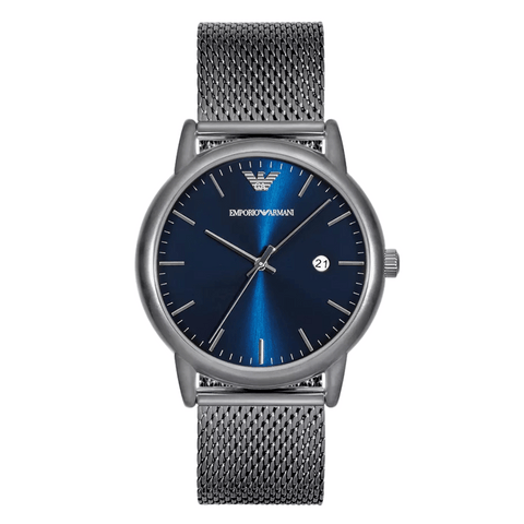 EMPORIO ARMANI Dress Grey Mesh Bracelet Blue Dial Quartz Watch for Gents - AR11053