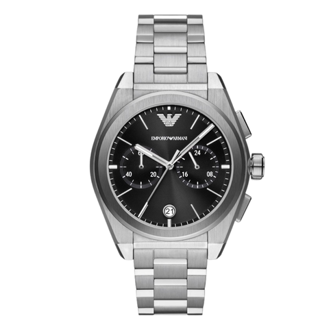Emporio Armani Federico Silver Stainless Steel Black Dial Chronograph Quartz Watch for Gents - AR11560