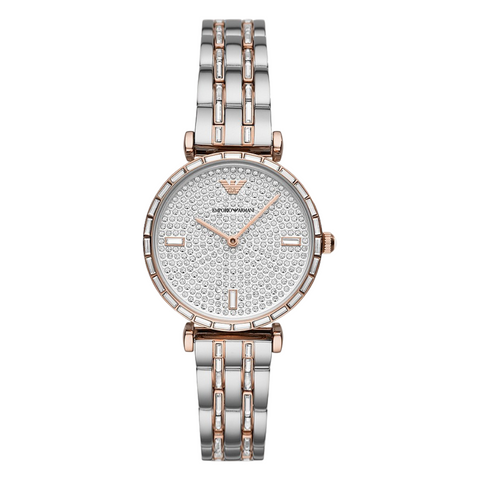 EMPORIO ARMANI Gianni T-Bar Two-Tone Stainless Steel Silver Dial Quartz Watch for Ladies - AR11293
