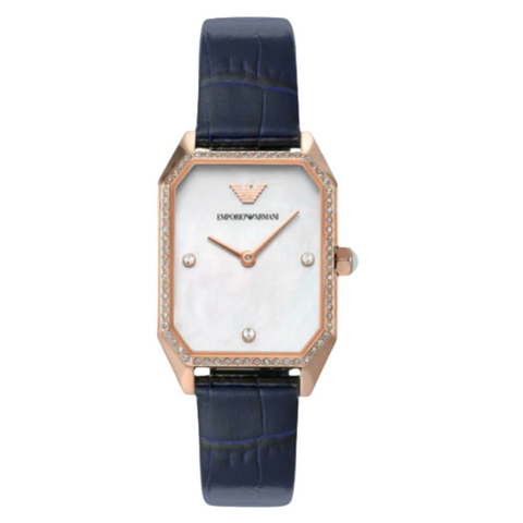 EMPORIO ARMANI Gioia Blue Leather Strap Silver Dial Quartz Watch for Ladies - AR11466