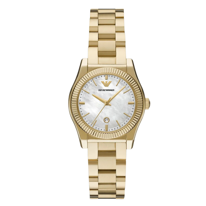 Emporio Armani Gold Stainless Steel White Dial Quartz Watch for Ladies - AR11657