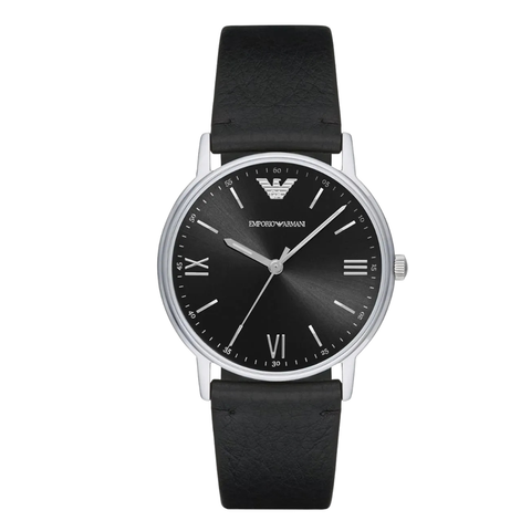 Emporio Armani Kappa Black Leather Strap Black Dial Quartz Watch for Gents - AR11013