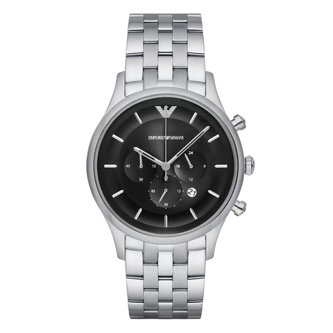 EMPORIO ARMANI Lambda Silver Stainless Steel Black Dial Chronograph Quartz Watch for Gents - AR11017