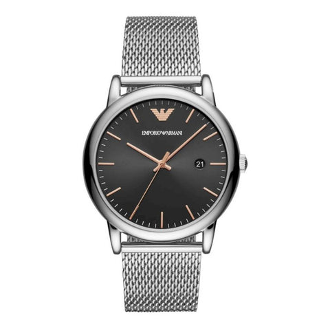 Emporio Armani Luigi Silver Mesh Bracelet Black Dial Quartz Watch for Gents - AR11272