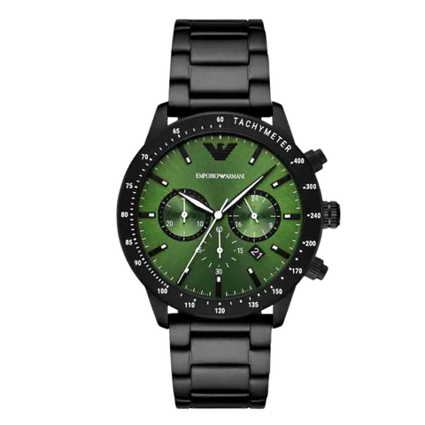 EMPORIO ARMANI Mario Black Stainless Steel Green Dial Chronograph Quartz Watch for Gents - AR11472