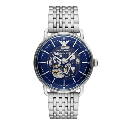 EMPORIO ARMANI Meccanico Silver Stainless Steel Blue Dial Automatic Watch for Gents - AR60024