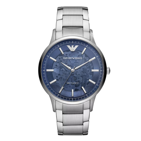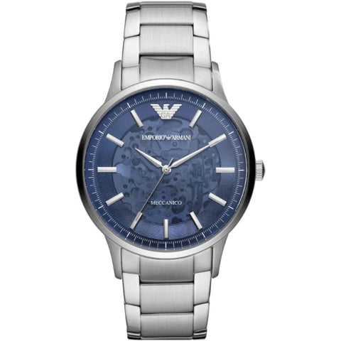 Emporio Armani Meccanico Silver Stainless Steel Blue Dial Automatic Watch for Gents - AR60037