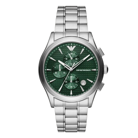 Emporio Armani Paolo Silver Stainless Steel Green Dial Chronograph Quartz Watch for Gents - AR11529