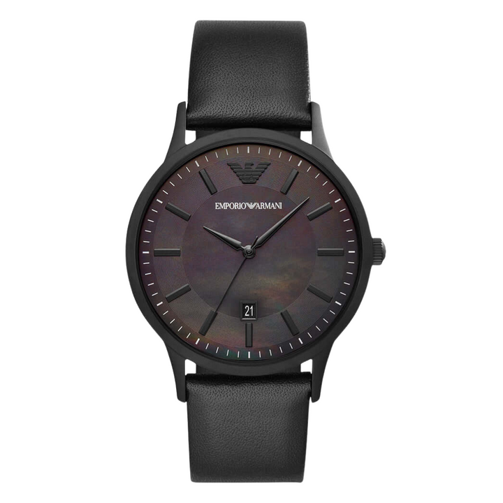 EMPORIO ARMANI Renato Black Leather Strap Black Dial Quartz Watch for Gents - AR11276