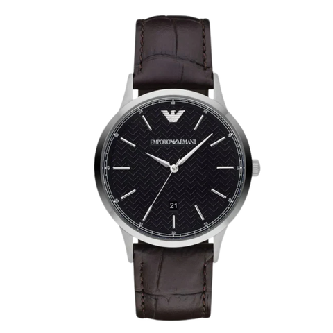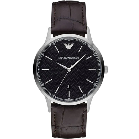 Emporio Armani Renato Brown Leather Strap Black Dial Quartz Watch for Gents - AR11187