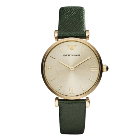 EMPORIO ARMANI Retro Green Leather Champagne Dial Quartz Watch for Ladies- EMPORIO ARMANI AR 1726