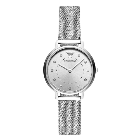 EMPORIO ARMANI Silver Dial Silver Mesh Bracelet Watch For Ladies - AR11128