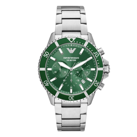 EMPORIO ARMANI Silver Stainless Steel Green Dial Chronograph Quartz Watch for Gents - AR11500