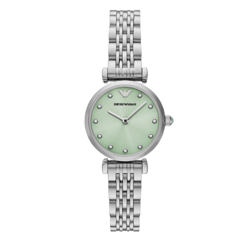 Emporio Armani Silver Stainless Steel Green Dial Quartz Watch for Ladies - AR11667