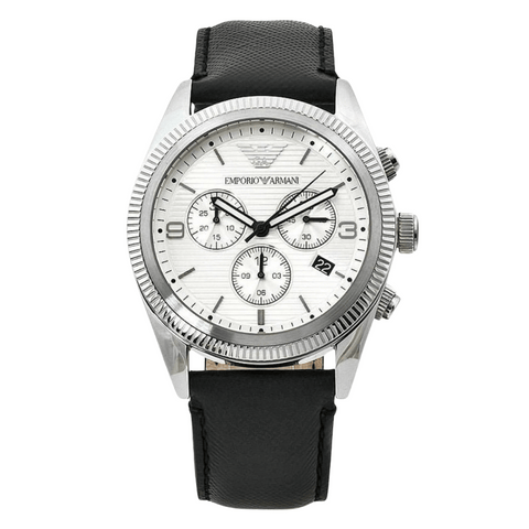 EMPORIO ARMANI Sport Black Leather Strap Silver Dial Chronograph Quartz Watch for Ladies - AR5895