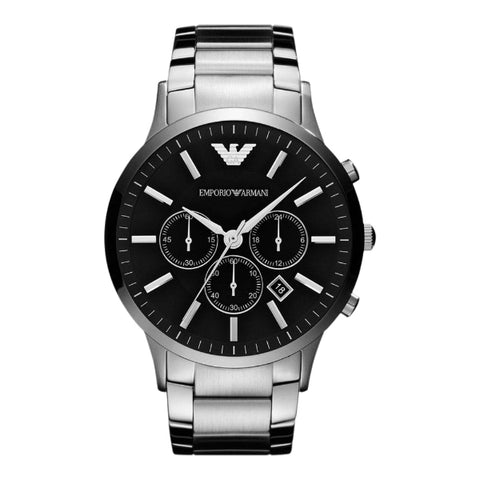 EMPORIO ARMANI Sportivo Silver Stainless Steel Black Dial Chronograph Quartz Watch for Gents - AR2460