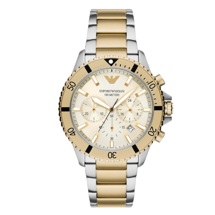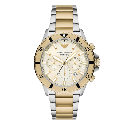 Emporio Armani Two-tone Stainless Steel Cream Dial Quartz Watch for Gents - AR11606