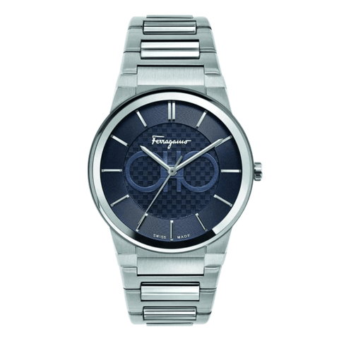 Ferragamo Contemporary Sapphire Silver Stainless Steel Blue Dial Quartz Watch For Gents - Sfhp00620