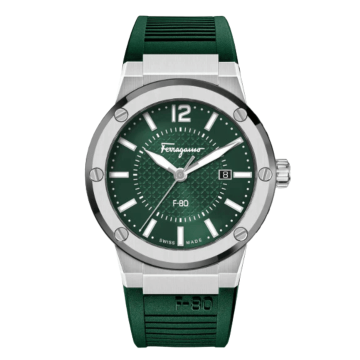 Add to WishlistFerragamo F-80 Green Silicone Strap Green Dial Quartz Watch for Gents - SFHY02722