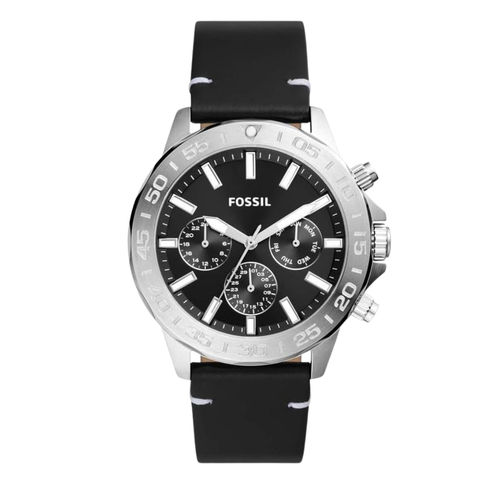 Fossil Chronograph Black Leather Strap Black Dial Bannon Quartz Watch for Gents - BQ2708