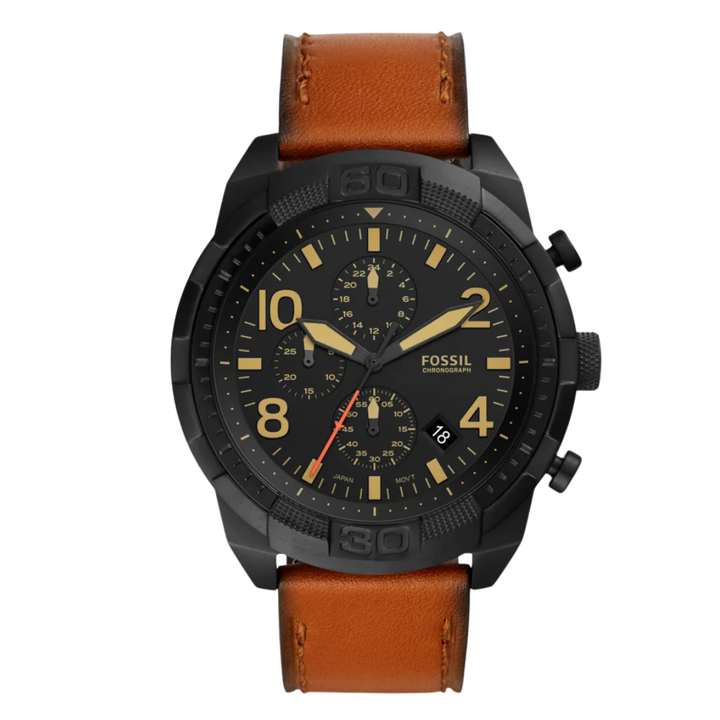 Fossil Chronograph Brown Leather Strap Black Dial Bronson Quartz Watch for Gents - FS-5714