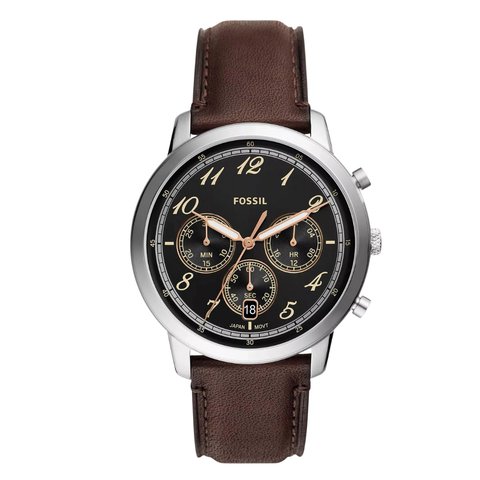 Fossil Chronograph Brown Leather Strap Black Dial Neutra Quartz Watch for Gents - FS6024