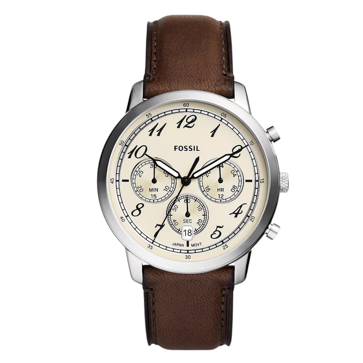 Fossil Chronograph Brown Leather Strap Cream Dial Neutra Quartz Watch for Gents - FS6022