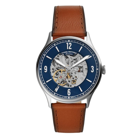 Fossil Forrester Brown Leather Strap Blue Dial Automatic Watch for Gents - ME3179