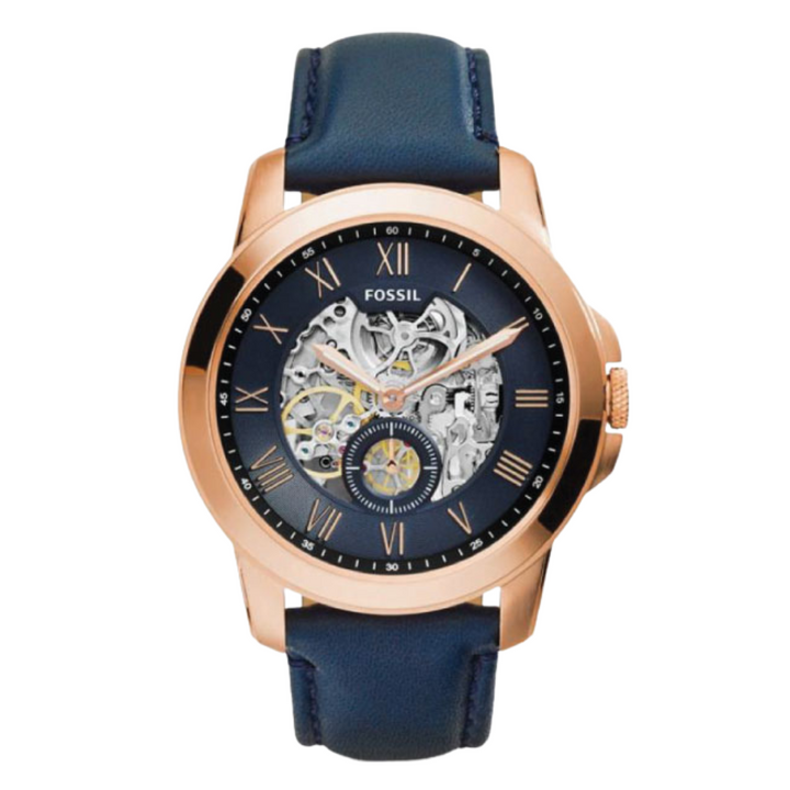 Fossil Grant Blue Leather Strap Skeleton Dial Automatic Watch for Gents - ME3054