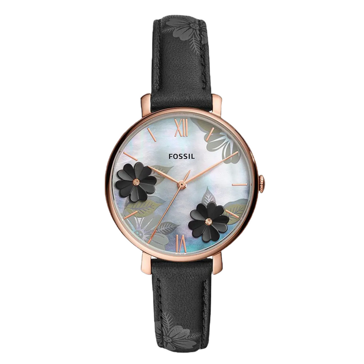 Fossil Jacqueline Black Leather Strap Mother of pearl Dial Quartz Watch for Ladies - ES4535