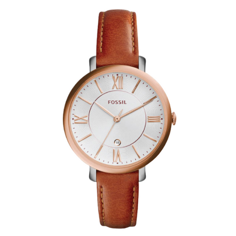 Fossil Jacqueline Brown Leather Strap Silver Dial Quartz Watch for Ladies - ES3842