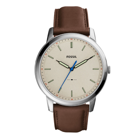 Fossil Minimalist Brown Leather Strap Off White Dial Quartz Watch for Gents - FS5306