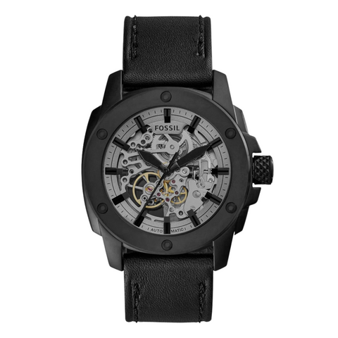 Fossil Modern Machine Black Leather Strap Skeleton Dial Automatic Watch for Gents - ME3134