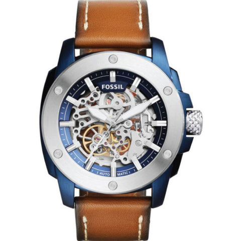 Add to WishlistFossil Modern Machine Brown Leather Strap Skeleton Dial Automatic Watch for Gents - ME3135