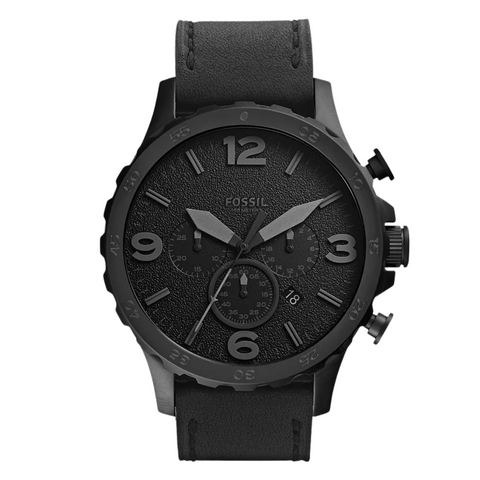 Fossil Nate Black Stainless Steel Black Dial Chronograph Quartz Watch for Gents - JR1354