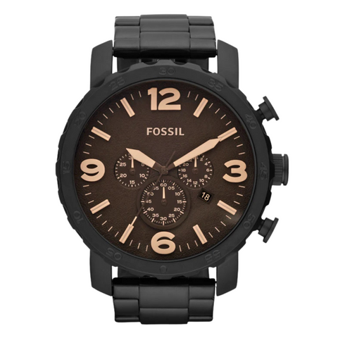 Fossil Nate Black Stainless Steel Brown Dial Chronograph Quartz Watch for Gents - JR1356