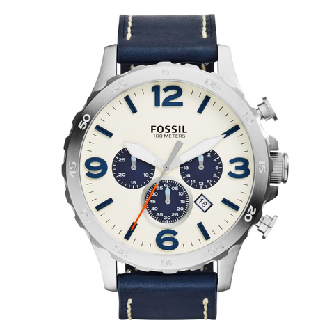 Fossil Nate Blue Leather Strap Cream Dial Quartz Watch for Gents - JR1480