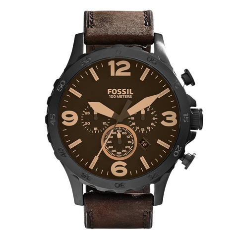 Fossil Nate Brown Leather Strap Brown Dial Chronograph Quartz Watch for Gents - JR1487