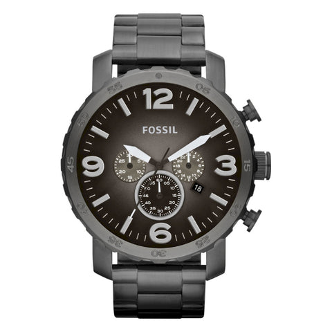 Fossil Nate Smoke Stainless Steel Gunmetal Dial Chronograph Quartz Watch for Gents - JR1437