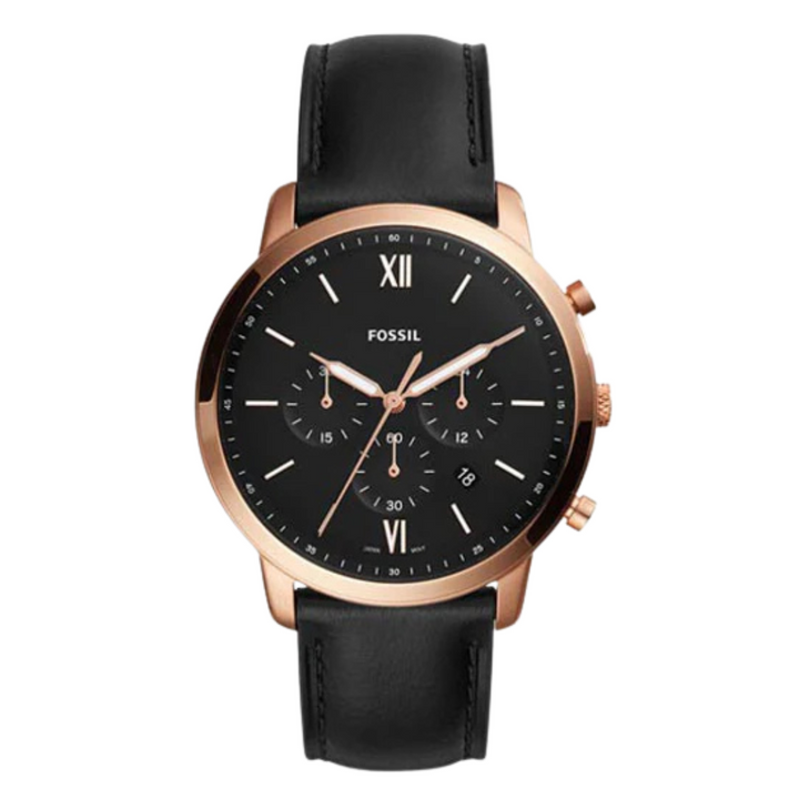 Fossil Neutra Black Leather Strap Black Dial Chronograph Quartz Watch for Gents - FS5381