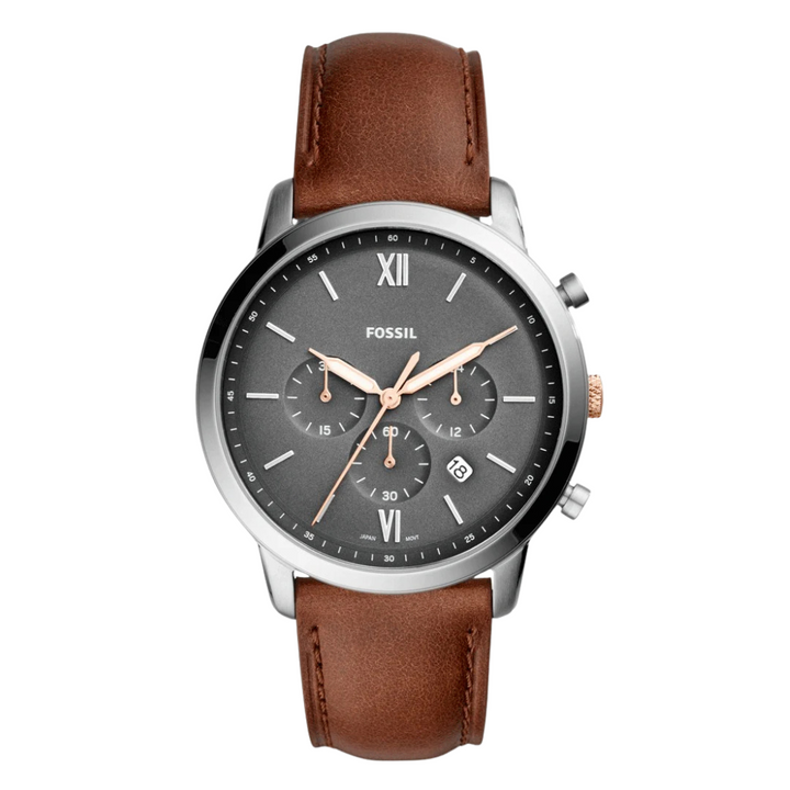 Fossil Neutra Brown Leather Strap Gray Dial Chronograph Quartz Watch for Gents - FS5408