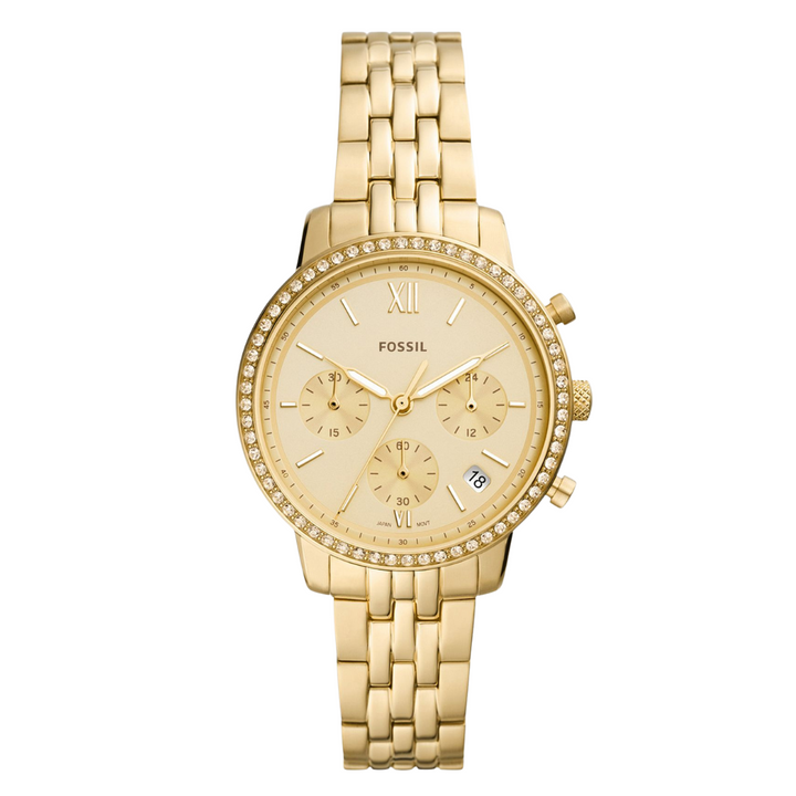 Fossil Neutra Gold Stainless Steel Gold Dial Chronograph Quartz Watch for Ladies - ES5219