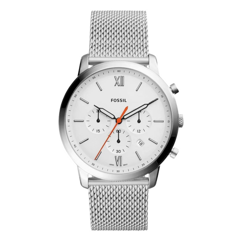 Fossil Neutra Silver Mesh Bracelet White Dial Chronograph Quartz Watch for Gents - FS5382