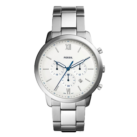 Fossil Neutra Silver Stainless Steel White Dial Chronograph Quartz Watch for Gents - FS5433