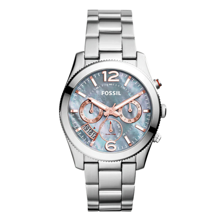 Fossil Perfect Boyfriend Silver Stainless Steel Mother Of Pearl Dial Chronograph Quartz Watch for Ladies - ES3880