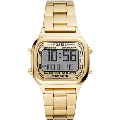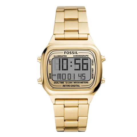 Fossil Retro Digital Gold Stainless Steel Positive Display Dial Digital Watch for Gents - FS5843