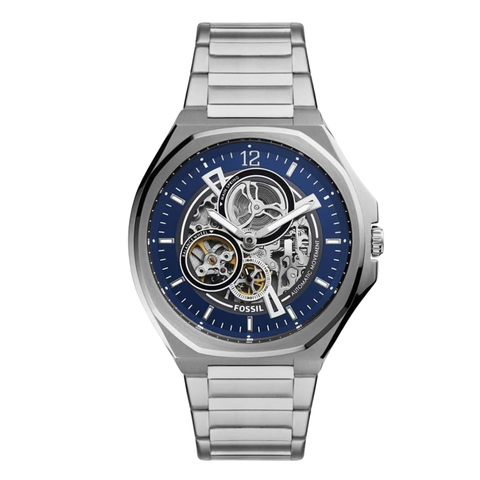 Fossil Silver Stainless Steel Blue Dial Automatic Watch for Gents - BQ2620